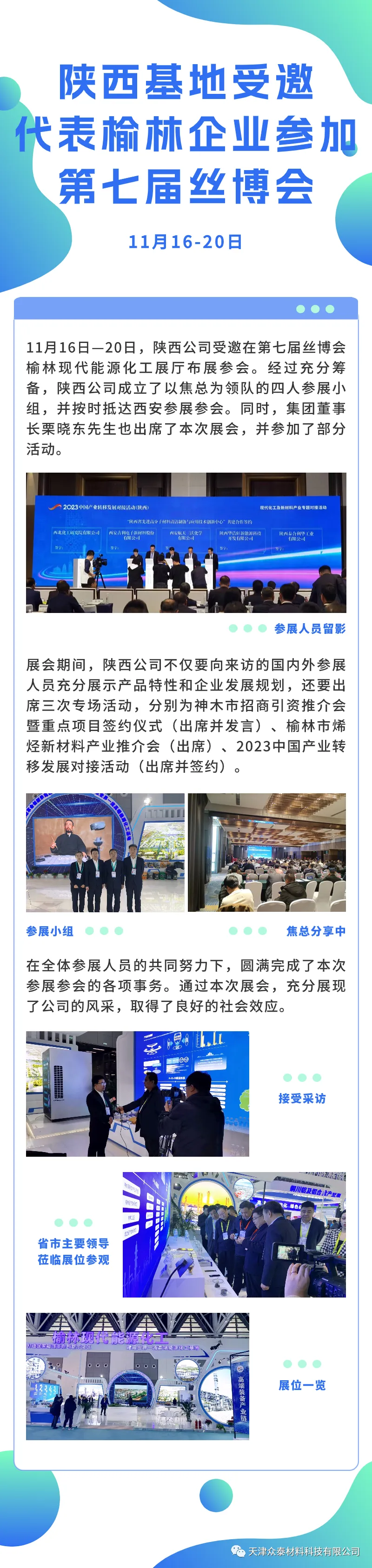 陜西公司受邀在第七屆絲博會,榆林現(xiàn)代能源化工展廳布展參會。經(jīng)過充分籌備,陜西公司成立了以焦總為領隊的四人參展小組,并按時抵西安參加展會。同時,集團董事長栗曉東先生也出席了本次展會,并參加了部分活動。